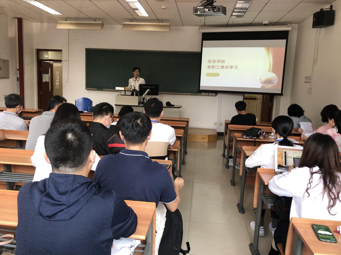 2021年9月23日13:30,皇冠足球网 在宁远222教室召开学院大会,高玲书记组织全体教职工集体学习习近平在庆祝中国共产党成立100周年大会上的讲话精神、第二十七次全国高校党的建设工作会议精神和中央教育工作领导小组《关于深入学习宣传贯彻党的教育方针的通知》文件精神。
