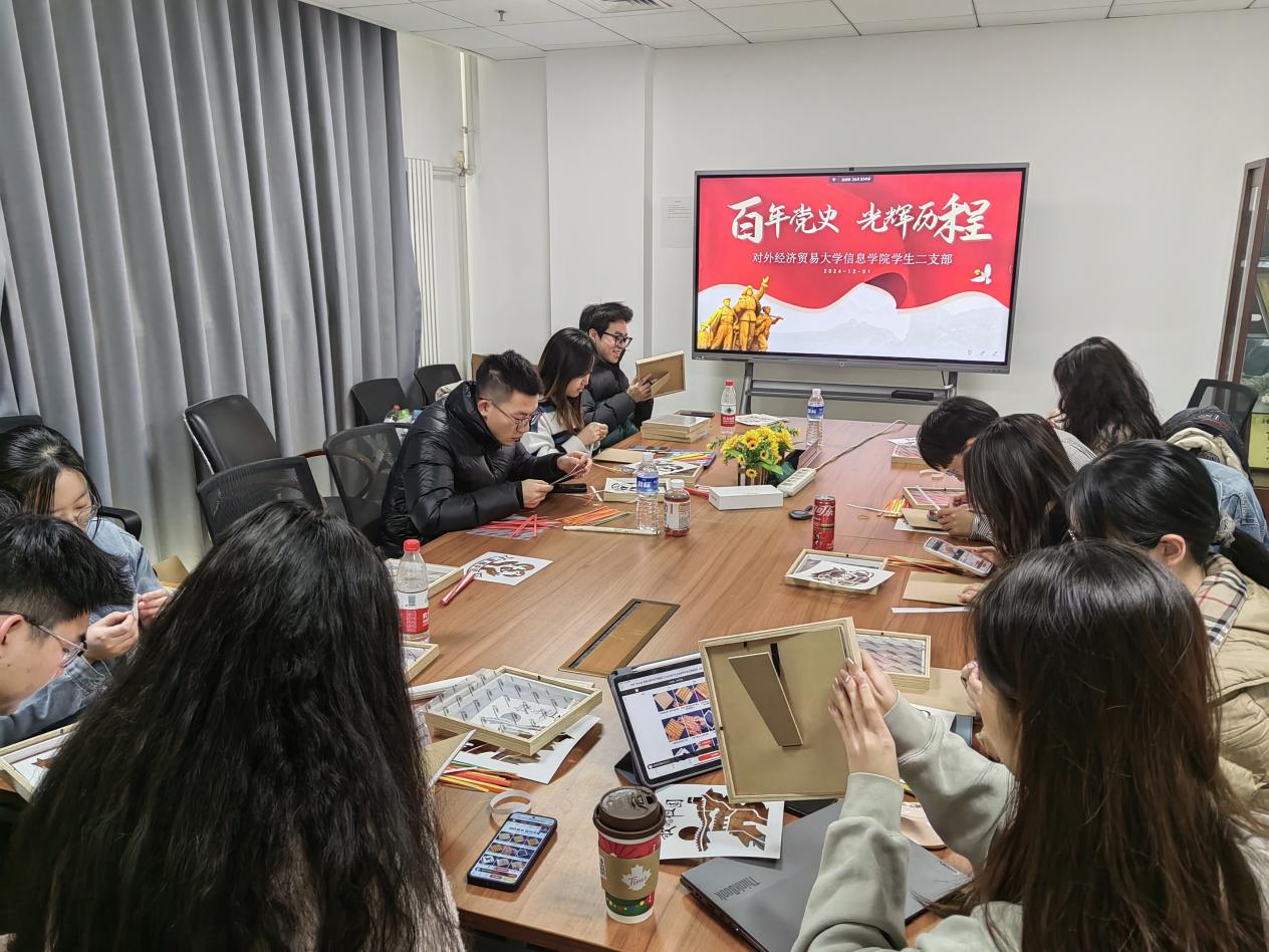 为弘扬中华优秀传统文化,增强党员的文化自信与归属感,12月6日,皇冠足球网 学生二支部组织一场别开生面的非物质文化遗产竹编画制作活动,支部书记叶潇舟和支部党员参加。