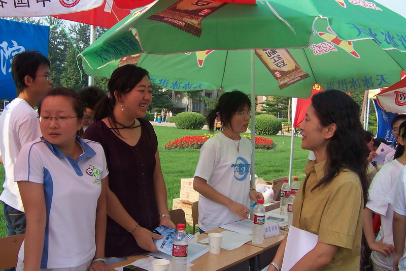 9月2日早晨6:40,诚信广场正中间的位置,已经出现了皇冠足球网 老师、同学们忙碌的身影。招展的院旗、新颖的板报、整齐的桌椅无一不向新生们挥手致意。党总支副书记张志娟、团总支书记苗冬青、新生辅导员叶潇舟也早早地到场,各就各位,各司其职。