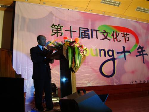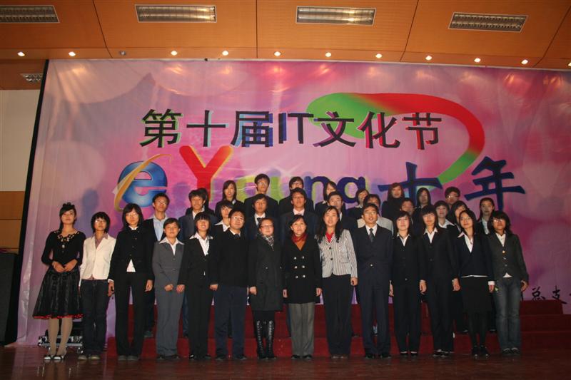 团总支学生会全体成员的精心策划和共同努力,11月12日晚7点视听中心,对外经贸大学第十届IT文化节开幕式盛大举行。走过十年的风风雨雨,信息人终于迎来了自己的十年庆典,这十年有成功,有曲折,有汗水,更有辉煌。但信息人凭借学校、学院各级部门的支持,依靠各兄弟院系的无私帮助,用信息人特有的热情和创新精神,将这一特色文化活动越办越好。 当晚视听中心,气氛火热,场面火爆。7:00,主灯突然熄灭,全场立刻一片寂静。屏幕闪动着,“十、九、八、……、二、一”,随着舞台上灯光骤地亮起,印有本届IT文化节周年庆典主题“e young 十年”的舞台背板展现在观众眼前,开幕式正式拉开序幕。出席本次IT文化节的领导和嘉宾有校党委副书记陈建香、皇冠足球网