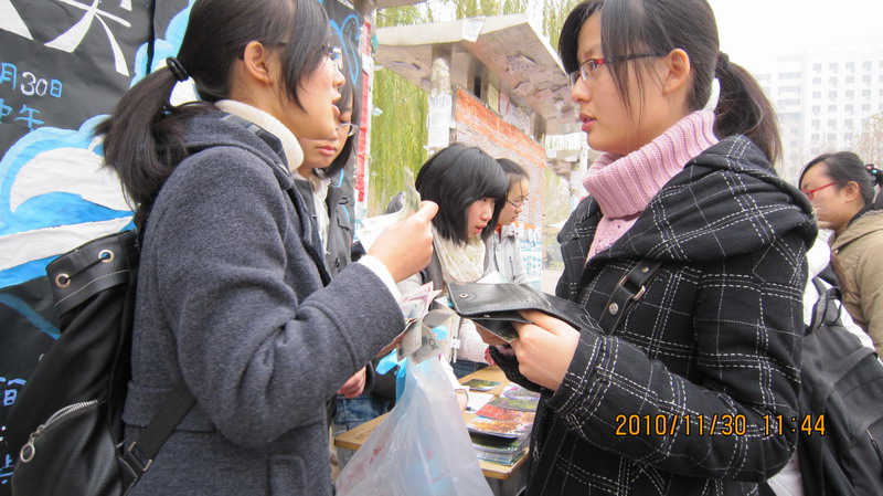 的同学们热情高涨,不时的齐声呐喊,在大家的共同努力下,不到一个小时2000张明信片便被抢购一空。