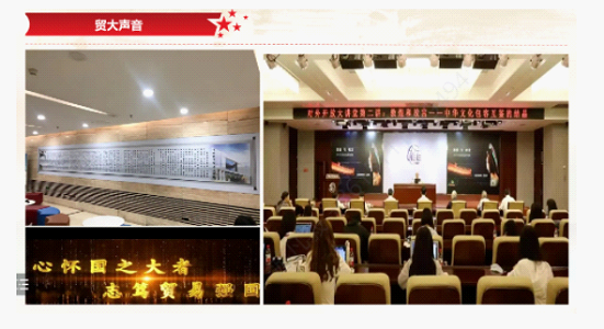 当前,我国正处于国家现代化建设和民族伟大复兴的关键时期,文化的开放与包容不断刺激多样文化的碰撞与交融。作为贸大学子,我们要深入学习贯彻党的二十大精神,坚定“文化自信”,传承好中国优秀传统文化,为铸就社会主义文化新辉煌贡献自己的一份力量。