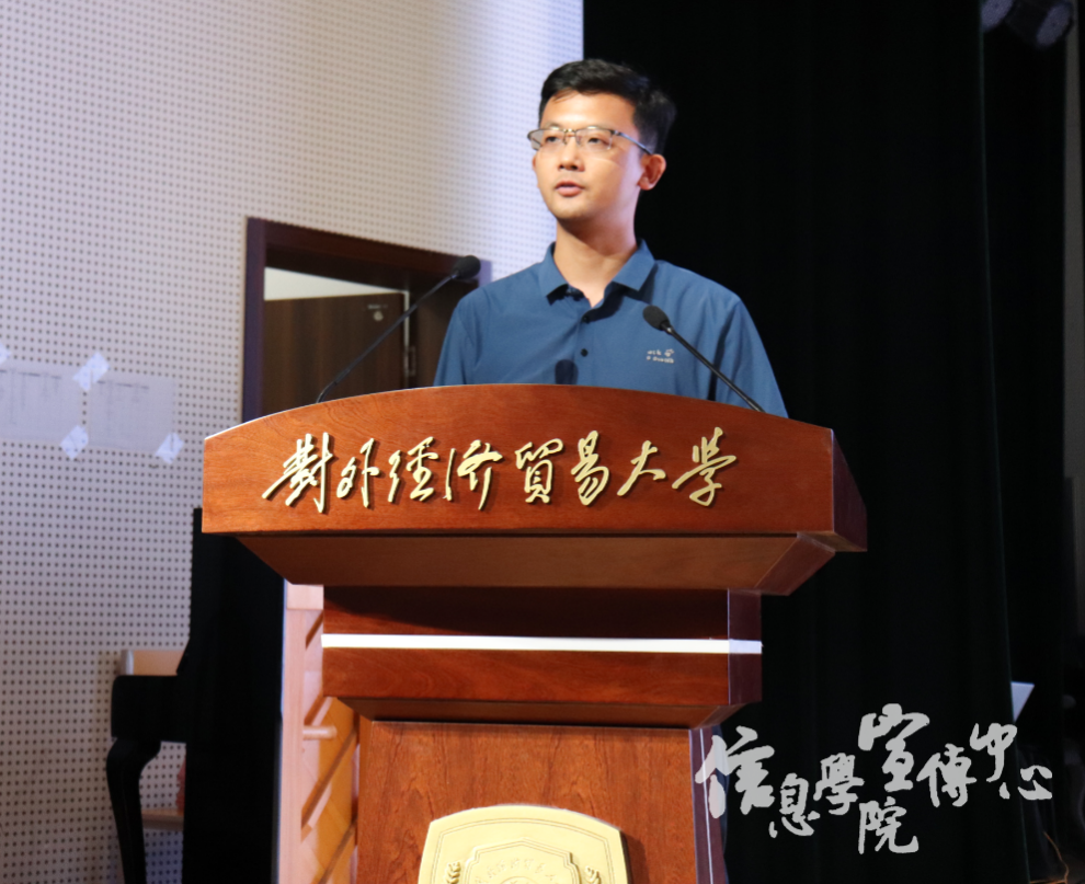 随后,教师代表杨向峰教授发言,他首先对新同学们表示热烈欢迎。杨老师指出:AI是当今时代的重要因素,人工智能发展迅速,不断推动创新,皇冠足球网 恰能提供这样一个良好的环境,同学们能学到先进的人工智能技术,有机会参与学术科研项目,使自己不断成长。杨老师希望同学们能珍惜机会,保持热情,成为引领时代潮流的弄潮儿,并祝同学们学习进步,生活愉快。