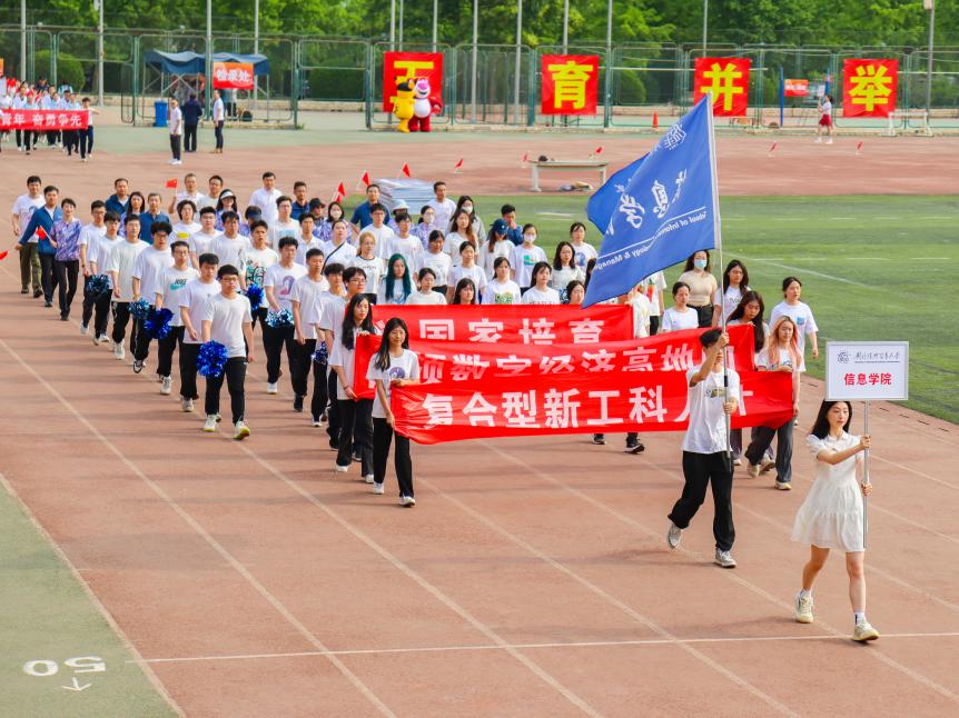 5月10日早上8点整,皇冠足球网 第五十四届运动会隆重开幕。皇冠足球网 代表队作为第八支队伍入场,信院师生以矫健的步伐、响亮的口号,亮相运动场,“为国家培育占领数字经济高地的复合型新工科人才”的铿锵誓言彰显出信院上下团结一心、奋发进取的昂扬斗志。