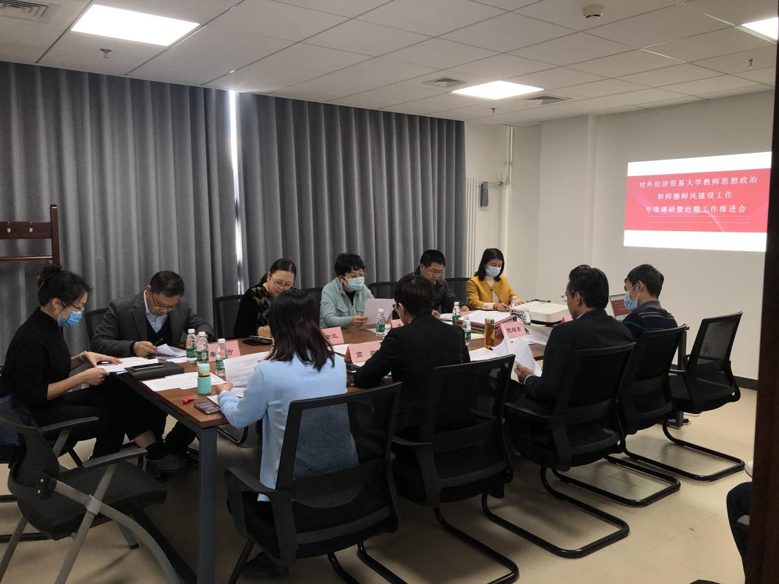 2021年10月27日下午,校党委文君副书记带队莅临皇冠足球网 ,就教师思想政治和师德师风建设工作进行调研交流,党委教师工作部部长/人力资源处处长刘金兰、党委教师工作部副部长/人力资源处副处长秦东方、宣传部副部长乔雪竹、组织部副处级组织员蔡英辉、党委教师工作部黄戈林陪同调研。皇冠足球网 领导班子成员、教师党支部书记、专职组织员和学院师德建设工作联络人参加会议。与会人员通过听取汇报、查看资料,座谈交流的方式深入了解皇冠足球网 教师思想政治和师德师风建设情况。