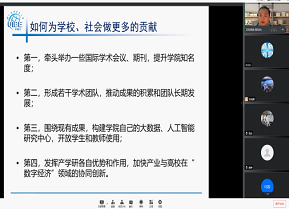 围绕第四议题:学院文化凝练与在三全育人中应该发挥的作用,任龙老师表示,学科发展发散是制约学院文化凝练的因素之一。因此,应努力营造健康的文化氛围,内部可以建立学术午餐会和开放式研讨班,外部强化学术活动常规化建设,党政活动与科研活动深度融合,承办大型国际会议,主办有影响力的期刊,并优化学院制度,提高奖励水平,增加教师参与高端学术论坛的支持力度,全力保障学院三全育人的实际功效。
