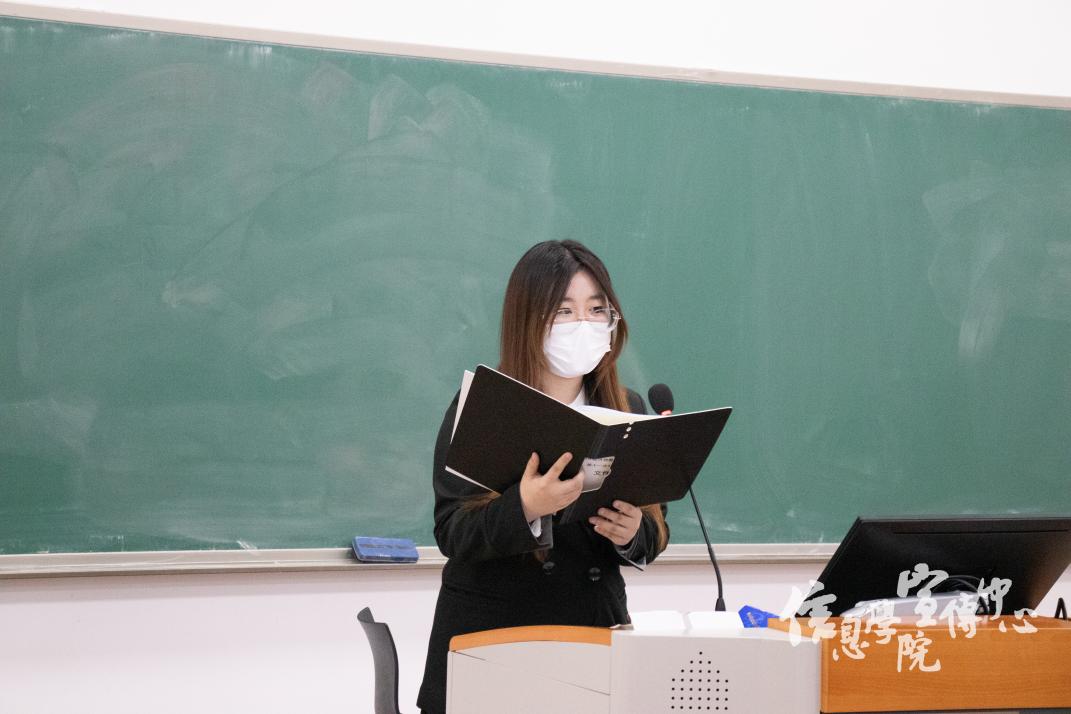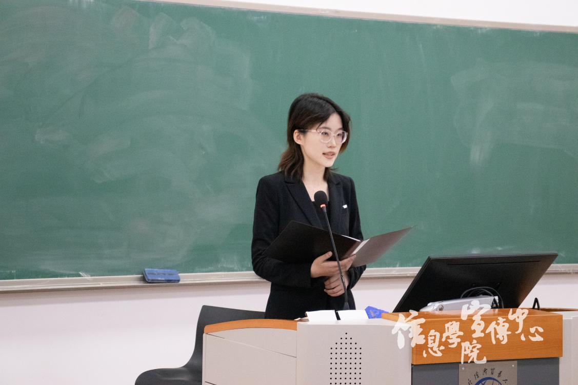 接下来由赵雨涵同学发表致辞。她提出,希望学生组织聚焦主责主业,坚持思想引领;希望同学们树立崇高理想,恪守学生本分,努力学习知识,提高内在素质,以实际行动回应党和国家的殷切期望,同时她也祝愿皇冠足球网 的明天更加美好。