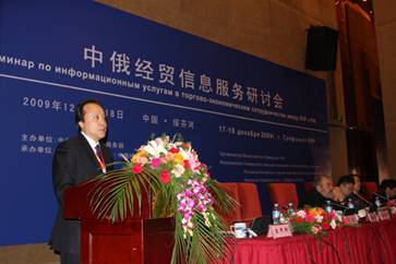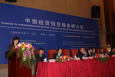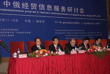 为加强中俄经贸合作信息服务,总结交流近年来网络信息平台在推动双边经贸合作中发挥的作用,由商务部主办,对外经贸大学(中俄经贸合作网)和绥芬河市人民政府共同承办的“中俄经贸信息服务研讨会”于2009年12月17-18日在黑龙江省绥芬河市举行。本次会议是中俄两国经贸信息服务领域的首次交流活动,与会代表围绕中俄经贸信息平台建设、网络信息与企业需求对接、电子商务等议题进行了研讨。