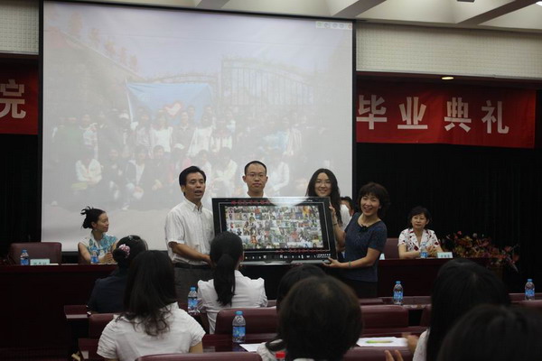 赠送了一份珍贵的礼物—电子万年历,万年历上有每个毕业生的生活照。这份饱含深情的珍贵礼物满载着全体同学对学院的依依不舍和感恩之情。