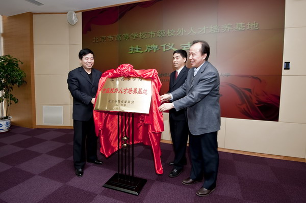最后,由王丽娟处长主持由北京市教委颁发的校外人才培养基地牌匾的挂牌仪式。