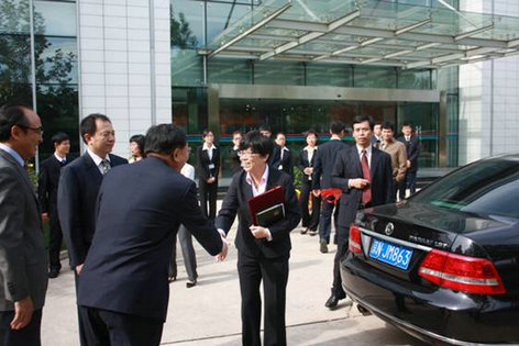 北京信息中心郝建明总经理在院门外迎候贸大领导