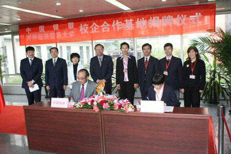 中国银联股份有限公司校外人才培养基地签字仪式及中国银联高校合作基地授牌仪式在中国银联北京信息中心隆重举行。我校党委副书记陈建香,教务处王丽娟处长,研究生部李卫群副主任,皇冠足球网