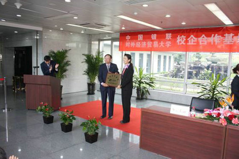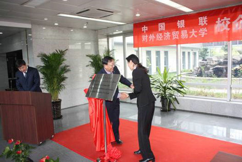 之后,柴总和陈书记为人才培养基地揭牌;柴总把中国银联首个高校合作基地牌匾授予对外经贸大学。