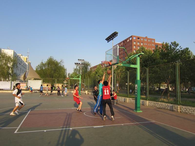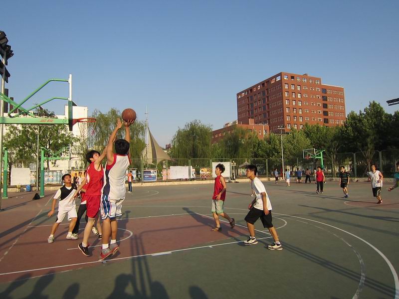 随着一声急促的哨声,比赛正式开始。一来球权就被大一的“学弟”们夺得。然后快攻,上篮,得分。看来“学弟”们不打算给学长们留情面,刚开场就轻取2分。然而学长们毕竟经验老道,一点都没被小小的疏忽影响。近身强吃、远投、上篮、造犯规一系列战术下来拉大了比分。到了第二节双方攻防都谨慎了很多,开始了拉锯战。命中率也较第一节下降了不少。特别是大一的队员们,在这节中落后不少。