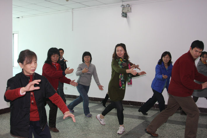 太极拳运动是一项强度适中,老少皆宜的运动。开班当天,学院的老师们学习的积。极性特别高,平时不爱活动的老师也饶有兴致地参与其中,他们说工会为大家创造条件,把太极拳学习送到办公室,是对老师们的健康极大的关心,一定要好好学习。