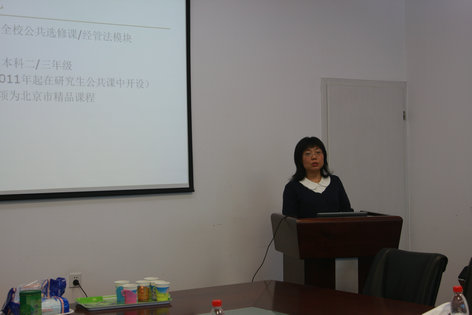 首先,曹淑艳教授汇报了《电子商务》的建设状况。该课程是面向财经类院校本科生开设的一门公共选修课,2008年被批准为北京市精品课程。经过四年的建设,该课程已经基本完成课程建设的内容。完成了教学大纲、习题和作业、电子教案、教学录像录制等内容,更新了近70%的课件内容及教学案例。《电子商务》授课教授秦良娟博士,重点汇报了该课程在教学模式方面所做出的努力。针对电子商务业务本身发展快速、新的模式层出不穷的特点,该课程尝试探索了课堂研究型教学模式,努力形成以教师为主导、以学生为主体的教学关系。为了使学生能够跟踪电子商务发展的前沿,同时激发学生的学习与研究热情,课程在小组研讨问题的选取上,重点选取电子商务领域中的典型企业、行业热点话题以及有理论研究价值的关键问题。为了能让学生对企业电子商务实践有更为直观的认识,激发学生的学习兴趣,课程还设计了部分企业参观等实践环节。从调查反馈结果看,该课程的研究型教学模式,可以促使学生增加课外自主学习的时间,对学生理解问题及相关知识领域的拓展非常有帮助,有助于逐步培养其独立分析问题与解决问题的能力以及小组成员间的分工协作能力。