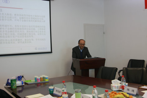 随后,《电子金融》课程授课教师谢怀军副教授汇报了该国家级精品课程的建设情况。他首先回顾了该课程自1995年开始至今的建设历程,并分析了该课程教学中面临的主要难点。他认为,电子金融所涉及的学科非常广泛,属于新兴的边缘学科,所涉及领域的发展又是日新月异,正处于快速发展和演变之中,因此如何体现教学内容的前沿性和时代性是最为重要,也是最为困难之处。此外,目前国内在电子金融领域的教材建设方面,相对落后于金融企业的实际应用。电子金融作为一门应用性课程,需要紧密联系实践应用,如何在教学中体现实践性,培养学生利用交叉学科的知识进行综合分析的能力,也是课程建设重点考虑和设计的内容。《电子金融》经过几年的建设,课程在教学内容体系设计方面取得了长足的进展。于2011年,被批准为国家级精品课程。