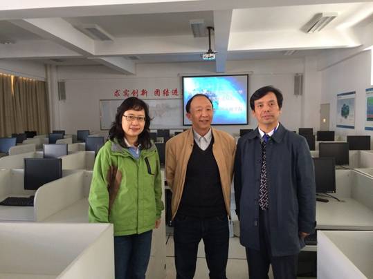 陈进院长与黄健青副院长首先到云南财经大学商学院参观访问,叶琼伟副院长带领陈院长、黄副院长参观了云南财经大学商学院的教学实验室,并介绍了云南财经大学信息发展的现状和问题,并共同探讨信息学科的发展方向。