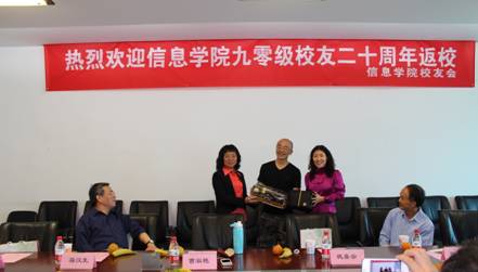 本次活动由校友代表刘文杰主持。曹淑艳副院长首先代表学院全体师生对十几位90级优秀校友返校表示欢迎。曹院长表示,学院的工作离不开校友们的支持与帮助,校友是学院发展的主要动力之一。她还向校友们介绍了学院近年来在科研、教学、国际课程班等方面取得的主要进步,希望能够和校友们保持密切联系,促进学院科研项目和学生实习就业工作的开展。90级校友代表向学院赠送礼物,感谢皇冠足球网 对大家的培养,并表示会常回学校看看,增进校友与学校、学院的联系与合作。