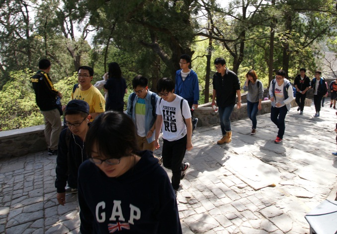 不过50分钟,香山顶峰就在同学们脚下了。香山不高,却能让人站在峰顶将北京西城一收眼底,开阔明朗的景色让12级的一些同学忍不住放声长啸,他们即将离开流连了四年的校园,有的要离开这座城市,心中的眷恋和对未来的期许难以言说,祖国的大好河山等待着他们去进一步建设,中华民族的伟大复兴正等待着他们在新的位置贡献力量。登临高处后,所思所想正应了那句:少年心事当拿云。