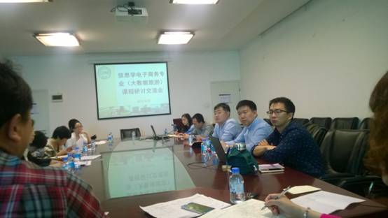 皇冠足球网 2015级共接收32名来自北京联合大学的双培学生,均为电子商务专业(大数据旅游方向)。前期双方学校经过多次沟通研讨,确定了培养方案,经过将近一年基础课教学,很快将要进入专业课程学习。由于一些专业课程属于新开课程,为了使任课教师对课程内容体系理解的更为深入,皇冠足球网 于2016年4月28日下午召开了双培生专业课程教学研讨交流会,皇冠足球网 华迎副院长、大数据旅游专业课程任课教师和教务秘书参会,特别邀请了北京联合大学旅游学院副院长石美玉教授和相关课程教师参与研讨。