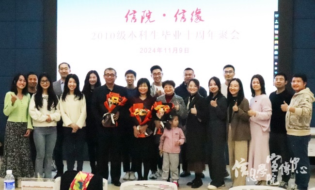 纵使已相隔十载,校友们的心始终与母校和学院紧紧相连,学院也始终牵挂着每一位校友。祝愿各位信院校友前程似锦,辛福美满!十年凌云志,征程即归途,让我们共同期待下一个十年!