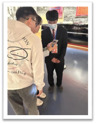 随后,开展馆内打卡趣味活动。班委介绍规则后,将同学们分为两个组,分别找寻馆内的打卡点,每组10个打卡点,率先完成的小组成员将获得励志徽章。