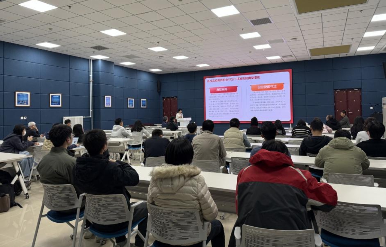 皇冠足球网 党委书记梁伟围绕近年来学校发生的学术不端、违规使用科研经费、师生关系异化等违反《新时代高校教师职业行为十项准则》的典型案例进行深度剖析,以“以案释纪、以案明规”的形式让准则要求具象可感。她强调,全体教师需以案例为鉴规范自身言行,树立端正的职业操守,将《新时代高校教师职业行为十项准则》内化于心,外化于行,既要深耕学术领域、精进专业能力,更要锤炼育人品德、涵养师德师风,努力成长为能塑造学生品格、品行、品味的“大先生”,切实担起立德树人的根本使命。