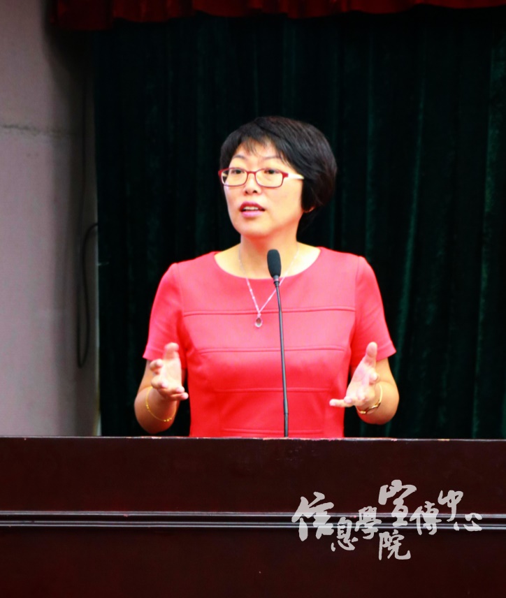 紧接着,教师代表秦良娟老师详细地介绍了学院专业的学习方法。她谈到,信息技术的发展孕育着商业模式的创新。它紧扣时代的脉搏,并与各行各业相互交融。大学教给大家的是合理的知识结构,而大学生应该做到不断积累专业基础知识,准确掌握行业的发展趋势和前沿动态,培养研究型的学习能力。做好人生规划的同时仔细思考自我的价值和责任,这也是每一位同学的必修课程。