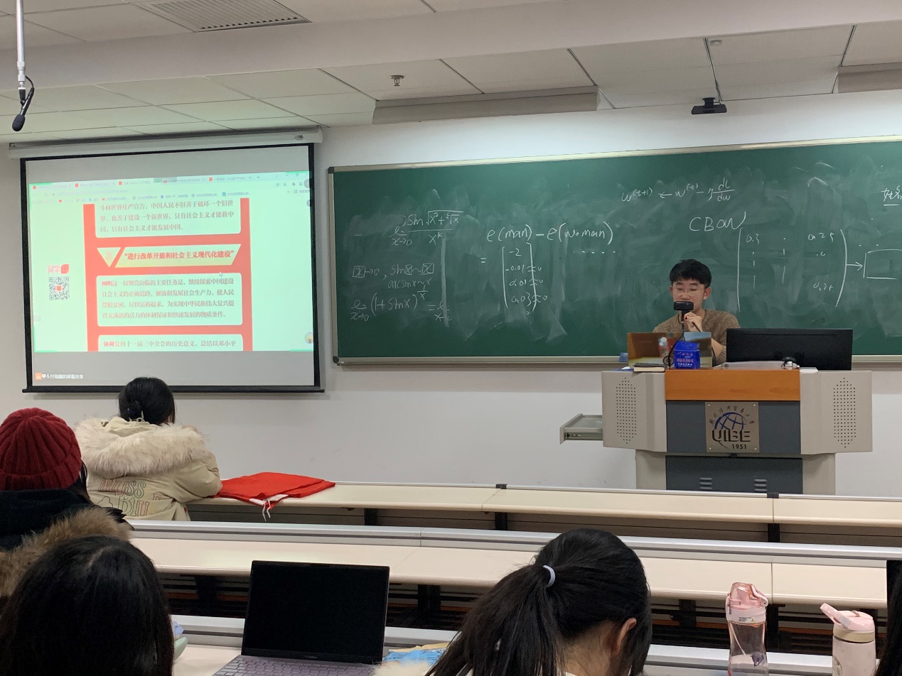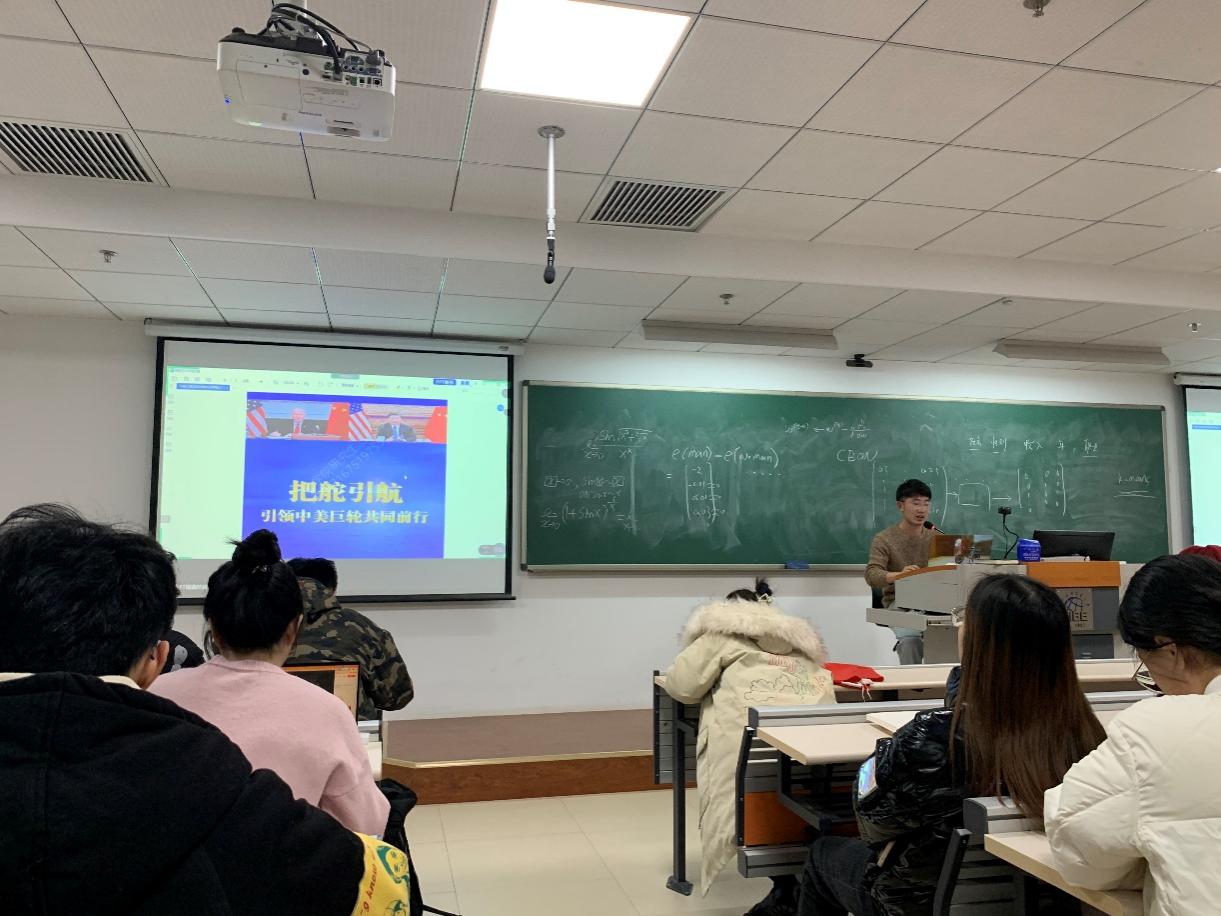 为了让学生党员了解十九届六中全会和中美元首视频会晤的内容及精神, 2021年11月23日晚,皇冠足球网 研究生二支部于在求索313召开支部大会,以支部书记上党课的形式,对相关时事进行了学习交流。