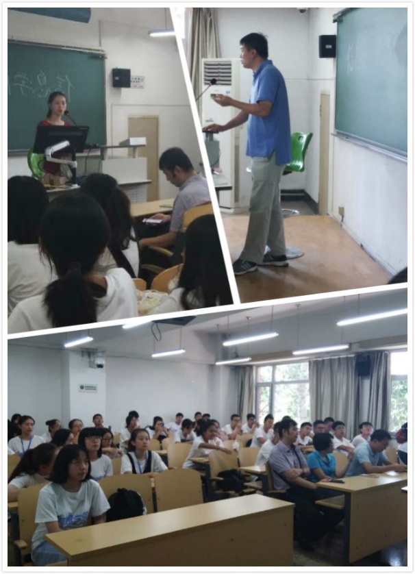 系主任讲解之后,各专业任课老师依次上台对自己所教授的课程及研究方向进行了介绍,并提出对同学们的希望。专业教育会进行的整个过程中,各位同学认真听讲,并不时提问,会议整体氛围融洽和谐。