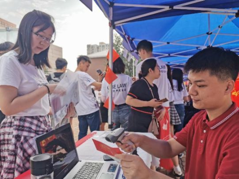 经过前期的细致筹备,迎新工作有条不紊地进行。上午八时许,迎新点陆续迎来了新同学。在研究生辅导员张延红老师的带领下,全体工作人员为新生们提供体贴而周到的服务,包括:注册流程介绍、相关材料收集、迎新材料与院衫发放等。此外,学院经过精心策划,特别为每位新生准备了“寄语青春祝福祖国”贺卡,新生们纷纷写下未来两年的青春寄语,同时表达了对祖国七十华诞的深深祝福。