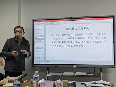 随后,缪琦副秘书长从数字化建设和信息化建设方面,向参会的各位领导、老师介绍了目前校友总会(教育基金会、校董会)的工作进展和成果。并建议皇冠足球网 充分利用双方现有宣传平台,搭建数据传输链条,安排专人专责,实现信息的实时共享,扩大和丰富与校友的联络机制。同时,关注重要时间节点,在关键值年活动中,凝聚校友聚合力,提升学院与校友的情感黏度。