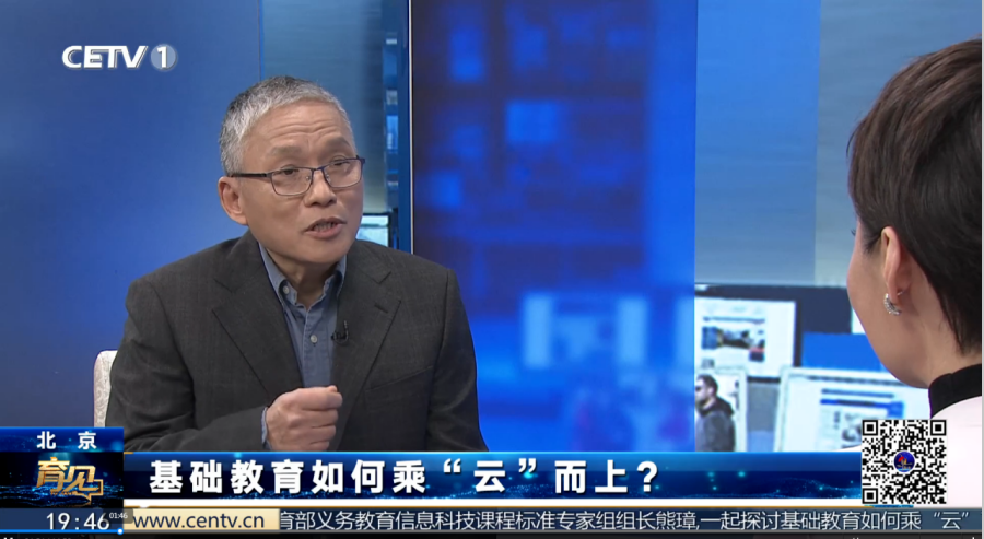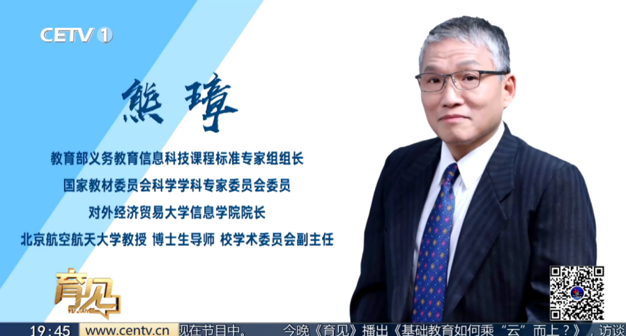 熊璋院长作为教育部义务教育信息科技课程标准专家组组长以“《育见》—基础教育如何乘“云”而上?”为题,接受了中国教育电视台专访。