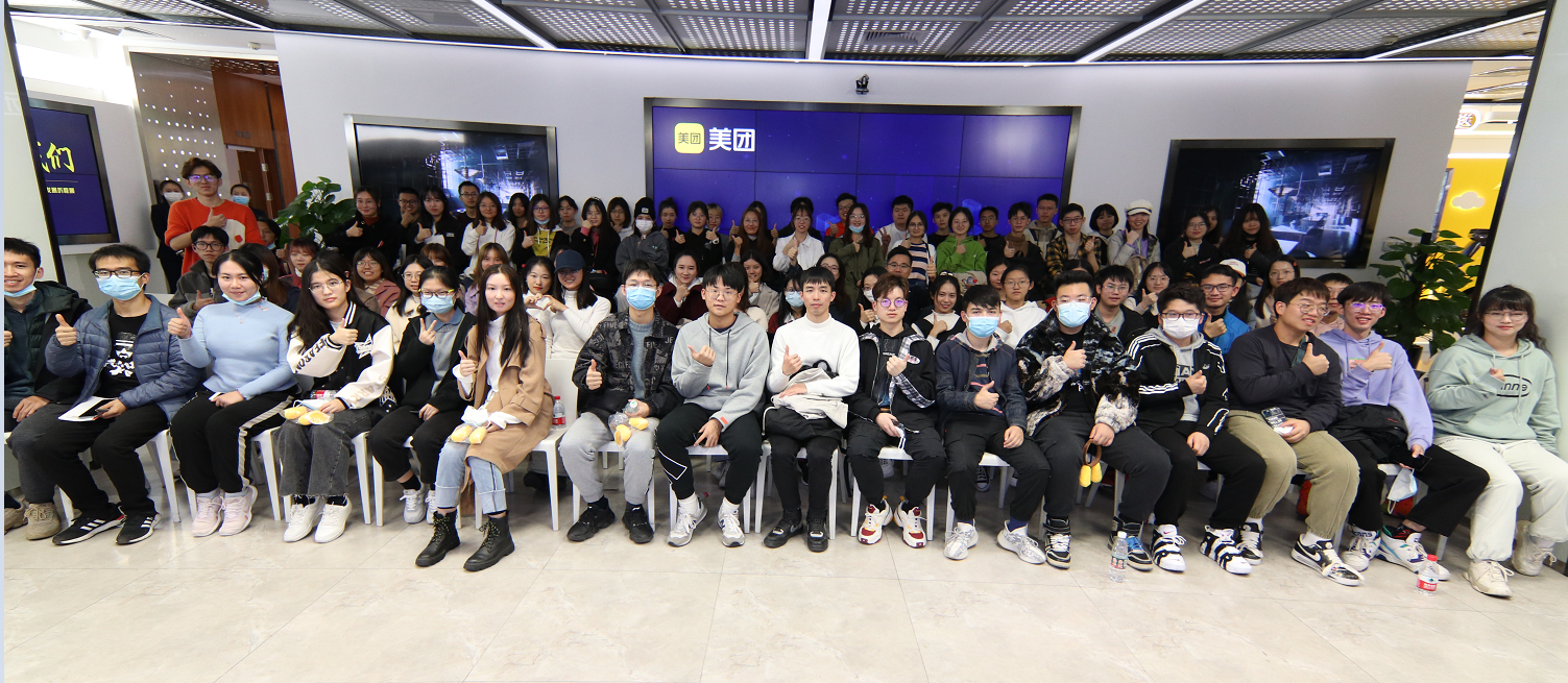 2021年10月21日下午,皇冠足球网 70余名本科学生在于晓丹和袁石老师的带领下,前往美团总部进行参观学习。