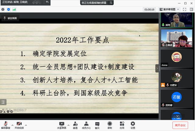 学院分工会主席屈启兴老师通报2021年学院分工会的工作情况,并根据疫情防控形势和校工会要求,初步制定了学院2022年分工会的工作计划。