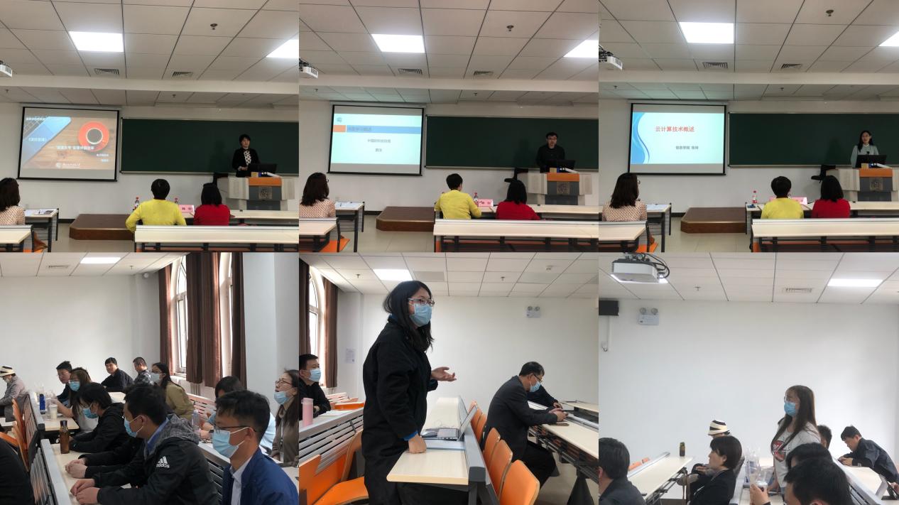 接下来,学院陈振娇、黄浩、张琦三位老师分别进行信息类专业课程思政示范讲解。陈振娇老师以《项目管理》课程为例,从《项目管理》思政元素、教学目标、教学实施过程、项目时间管理几方面进行讲解。陈老师以“一只口罩”的大事记和“一家医院”的大事记为例,引出疫情期间中国防控疫情的效率和速度,突出时间管理的重要性。同时,陈老师鼓励学生建立时间管理观念,计算时间参数来指导日常工作和学习,做一个守时和有规划的人。黄浩老师以《深度学习》课程为例,从深度学习简介、CPU/GPU/TPU、深度学习框架三方面进行示范讲解,引发学生对中国科技自信的思考。张琦老师以《云计算概述》课程为例,从云计算产生背景、云计算与大数据、云计算的发展、云计算的基本概念等方面进行示范讲解,在讲解过程中将国家对大数据和云计算的战略发展定位融入其中。三位老师在讲解过程中,与学生代表就授课内容和问题进行了互动。