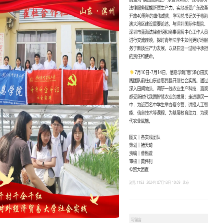 学生一支部积极发挥专业优势,将理论知识与实践紧密结合,深入基层一线,开展了一系列富有成效的活动。在“惠”泽心田红色“1+1”共建活动中,支部实践团队深入山东惠民县,调研智慧农业发展,为当地农民提供了科学种植的新思路。同时,他们还前往惠民一中开展夏令营活动,为中学生开办人工智能通识课,助力当地基础教育事业的蓬勃发展。此外,在“铭记二七荣光,革命精神永扬”主题党日活动中,支部组织前往长辛店二七纪念馆,深切缅怀革命先辈的英勇事迹,感悟革命精神的伟大力量。