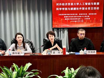 2025 年 12 月 18 日,皇冠足球网 行政党支部与麒麟软件有限公司教育发展与信息中心党支部在银谷大厦开展主题党日活动。皇冠足球网 党委书记梁伟、党委副书记张旭路,行政、智数、信管党支部党员教师代表;麒麟软件教育发展与信息中心党支部书记、教育发展中心总经理张娜,教育发展与信息中心党支部组织委员、教育发展中心副总经理杭斯乔,服务器研发第二党支部书记侯健,服务器研发第一党支部组织委员张鸿儒,教育发展中心人才解决方案总监何澍,营销中心行业总监贾鹏等20余名党员参加活动。