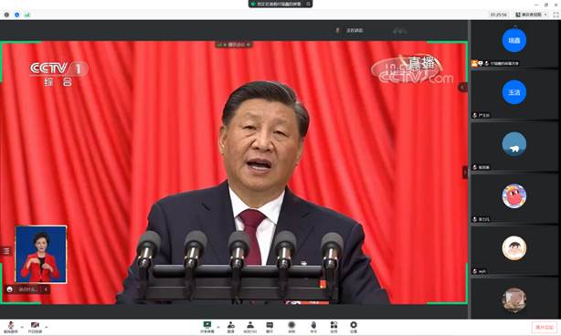 2022年10月16日,中国共产党第二十次全国代表大会隆重开幕。党的二十大是在全党全国各组人民迈上全面建设社会主义现代化国家新征程、向第二个百年奋斗目标进军的关键时刻召开的一次十分重要的大会,大会的主题是:高举中国特色社会主义伟大旗帜,全面贯彻新时代中国特色社会主义思想,弘扬伟大建党精神,自信自强、守正创新,踔厉奋发、勇毅前行,为全面建设社会主义现代化国家、全面推进中华民族伟大复兴而团结奋斗。上午10时,皇冠足球网 研究生二支部采用线上会议的方式,组织全体成员集中收看中国共产党第二十次全国代表大会开幕会直播,认真聆听、学习了习近平总书记代表十九届中央委员会向大会作的报告。