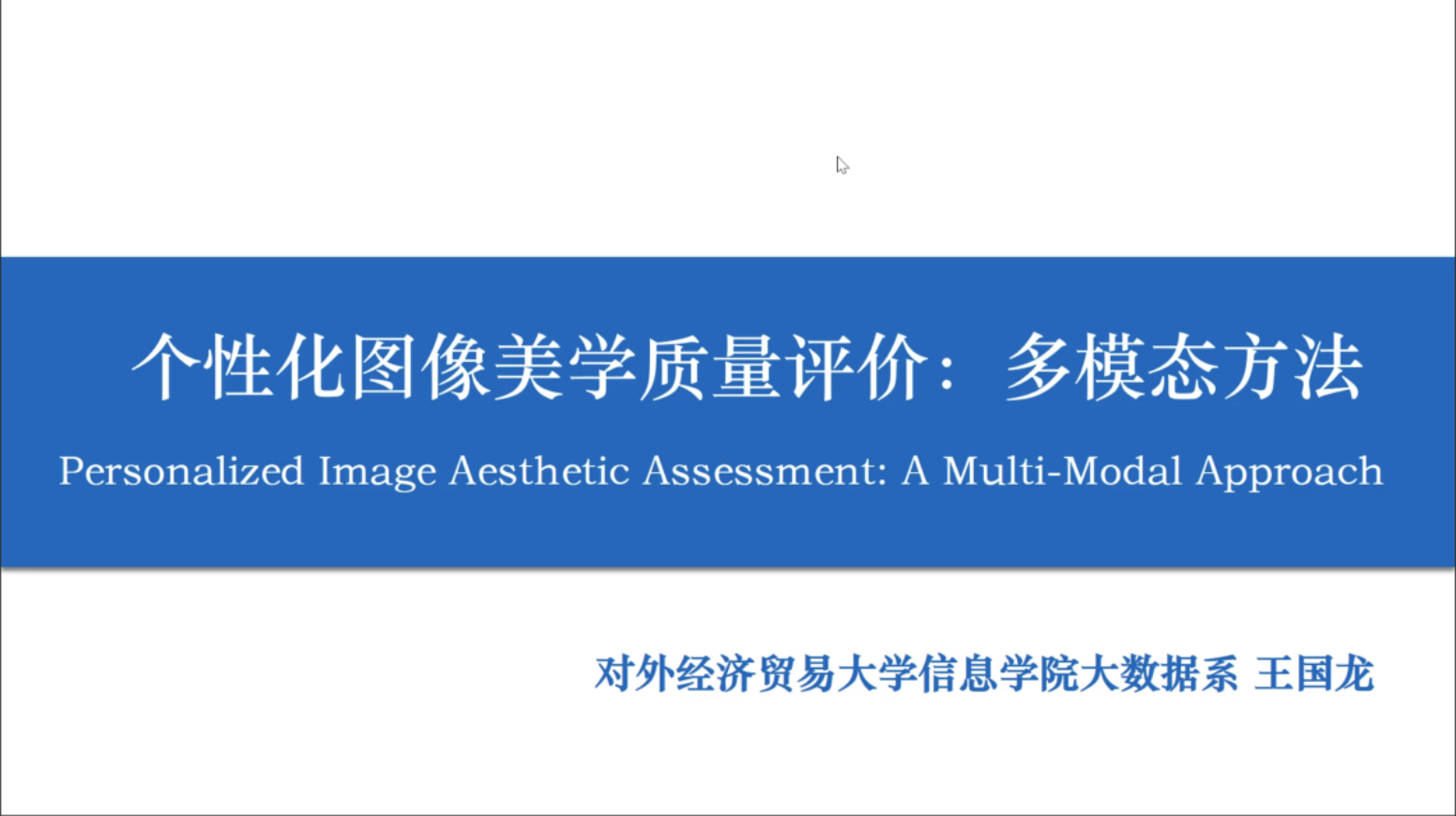 本次讲座采取线上的交流方式,由皇冠足球网 刘小月老师主持。刘小月老师先向参会者介绍了王国龙老师的研究经历。紧接着,王国龙老师做了基于多模态方法的个性化图像美学质量评价研究的学术分享。