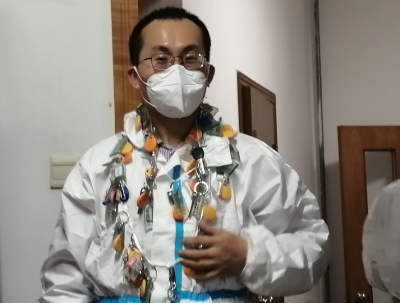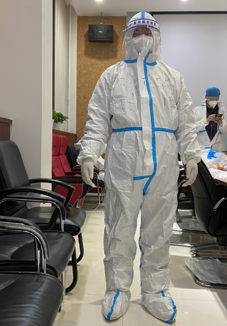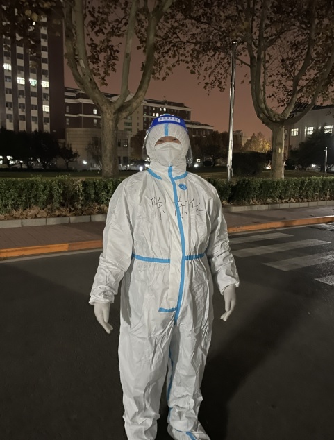 同在应急转运组的陈东华老师说,这次校内疫情期间,我很荣幸能够参与学生转运志愿者工作,为学校抗疫贡献自己的一份力量。穿上防护服工作到凌晨,深深地体会“大白”的不容易以及耐心,培养的不仅是一种奉献精神,更是对自己的锤炼,看到自己的潜力。相信我们最终将取得胜利!