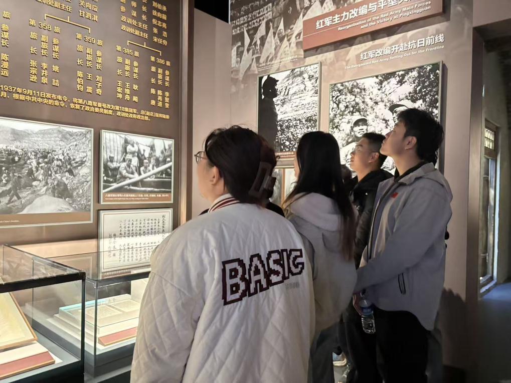 参观过程中,纪念馆讲解员结合自身的历史积累与感悟,为师生生动讲述了展品背后感人至深的抗战故事。他深情回顾了抗日军民在艰苦环境中坚守信仰、浴血奋战的英勇事迹,深入阐释了“天下兴亡,匹夫有责”的抗战精神内核,为师生带来一场沉浸式的红色教育体验。韩毓仙老师引导大家将历史与现实紧密结合,思考新时代青年应如何传承红色基因,将爱国之情转化为提升本领、建功立业的实际行动。
