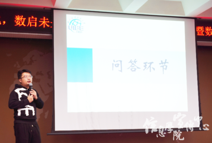 紧接着,活动进入到问答环节。同学们积极提问,贾老师则一一耐心解答。他不仅详细阐述了各种科学技术对未来的影响,并从内容制作、思想内涵、逻辑框架等方面给出了增进文化影响力的可行方式,为同学们提供了宝贵的见解和启示。