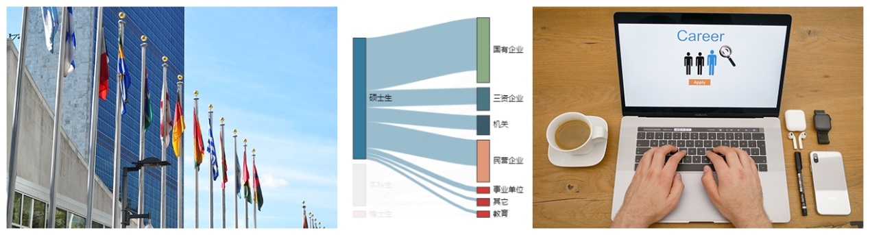 我院培养的研究生具有优秀的专业素质和综合能力,受到用人单位的青睐,得到社会广泛的认可,近年来硕士研究生的就业层次都保持在较高水平,大多数毕业生都在国家重点行业或领域单位就业,就业单位包括:公安部、中国人民银行、地方政府部门,四大国有银行、中移动、中石油、中粮、中信集团等国有企业,阿里巴巴、腾讯、新浪等知名民营企业,以及埃森哲、施耐德、四大会计事务所等知名外企。